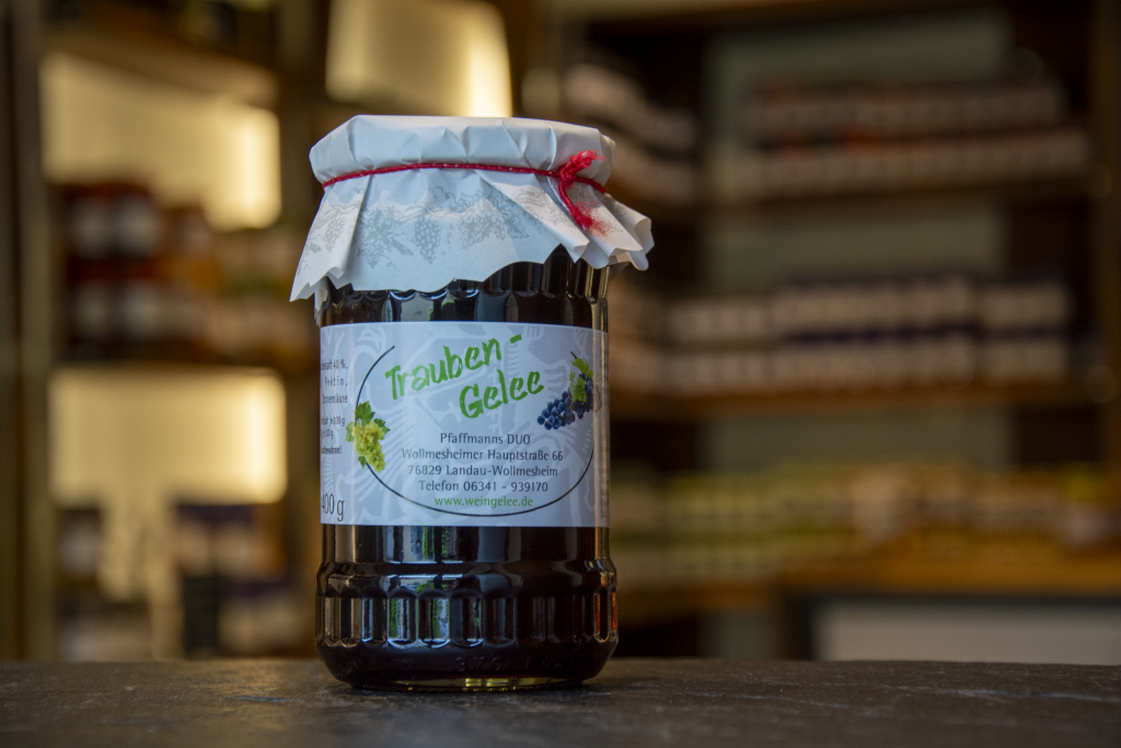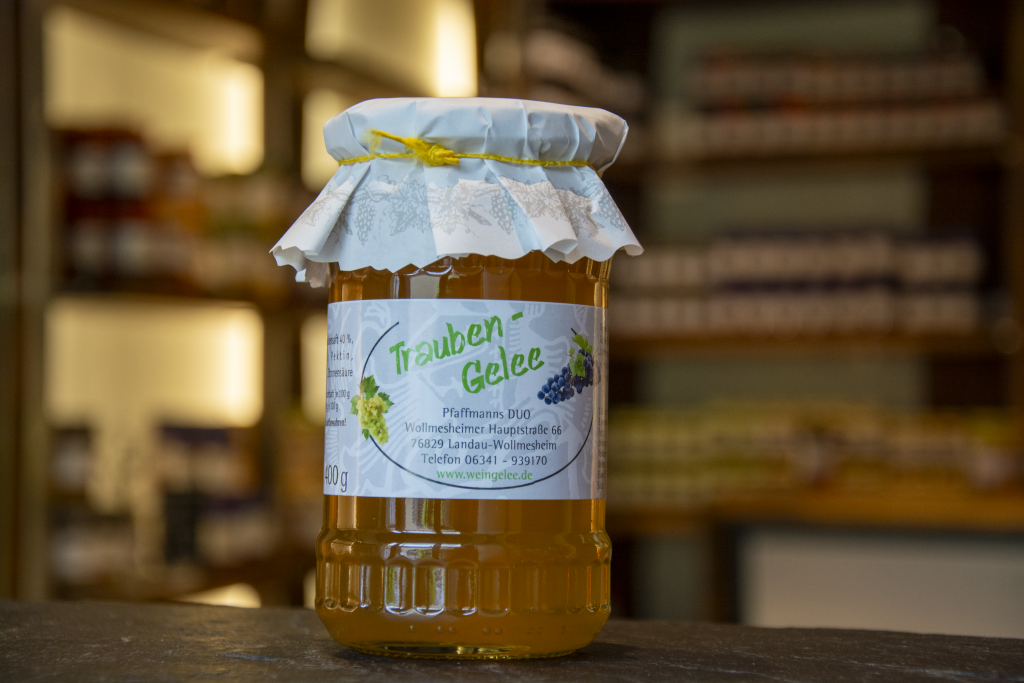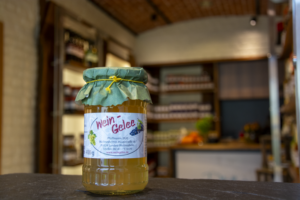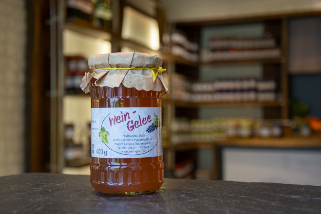 Unser Wein-Gelee ist seit 1984 ein fester Bestandteil von Pfaffmanns DUO. Hergestellt nach dem Original-Rezept mit ausgesuchten Weinen, vereint es volles Aroma mit feiner Süße. Mit rund 4 % Alkohol eignet es sich nicht nur als außergewöhnlicher Brotaufstrich, sondern auch perfekt zum Kochen, Backen oder als Begleiter zu Käse.